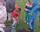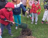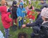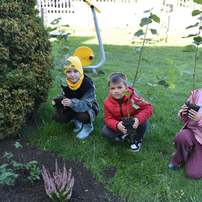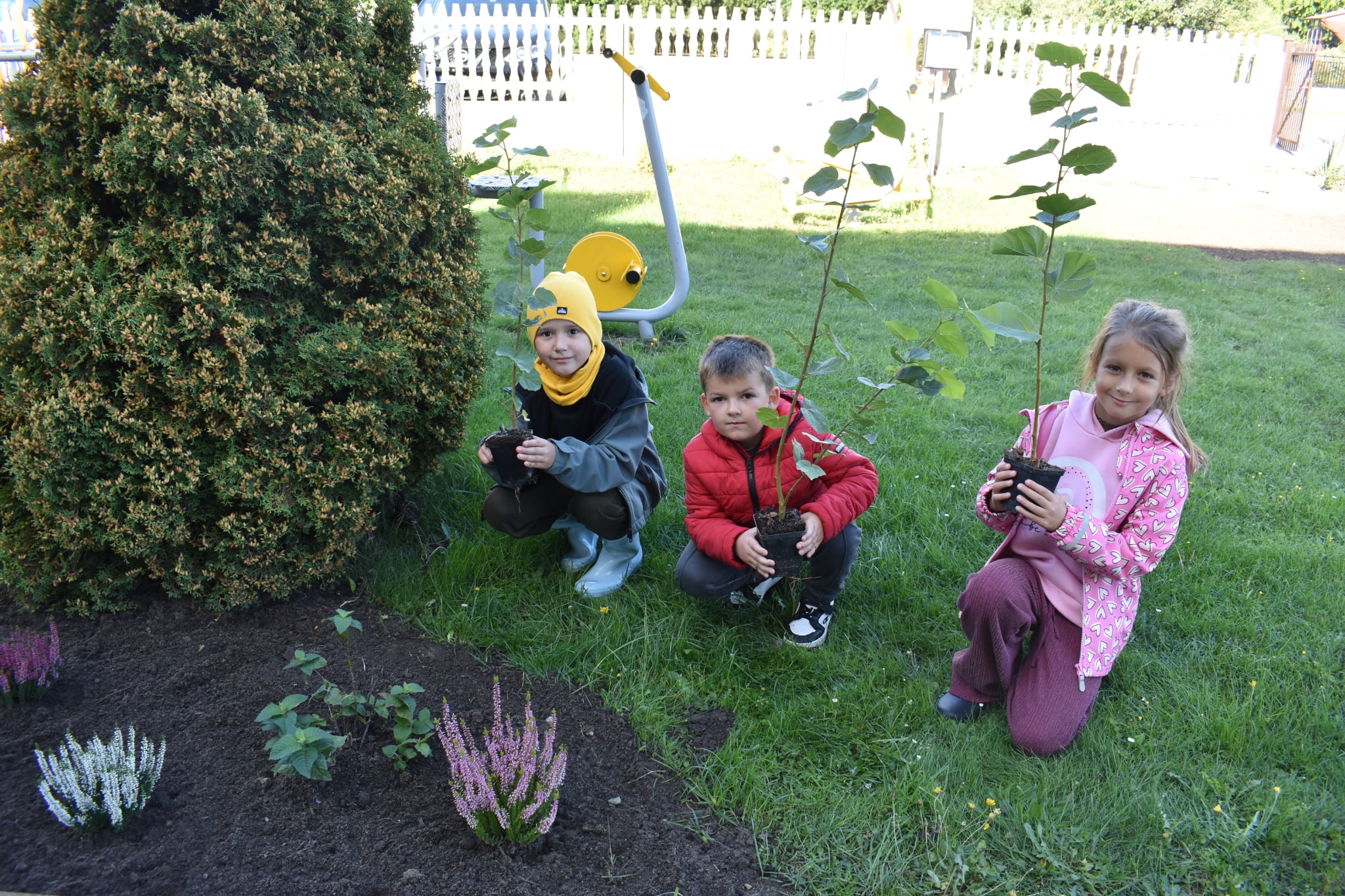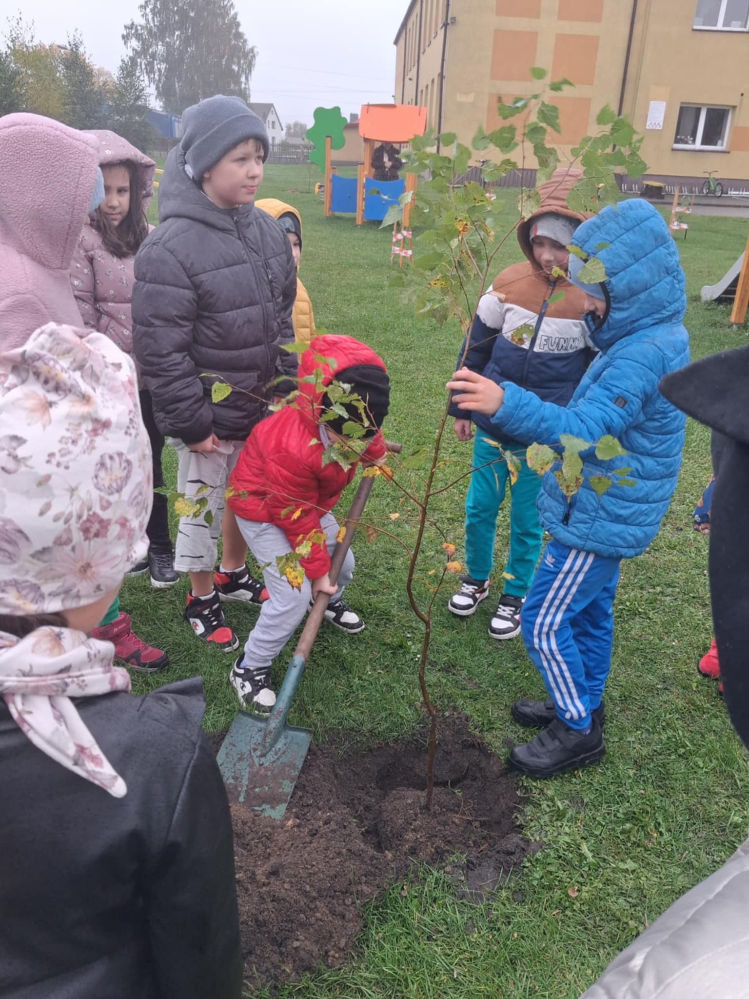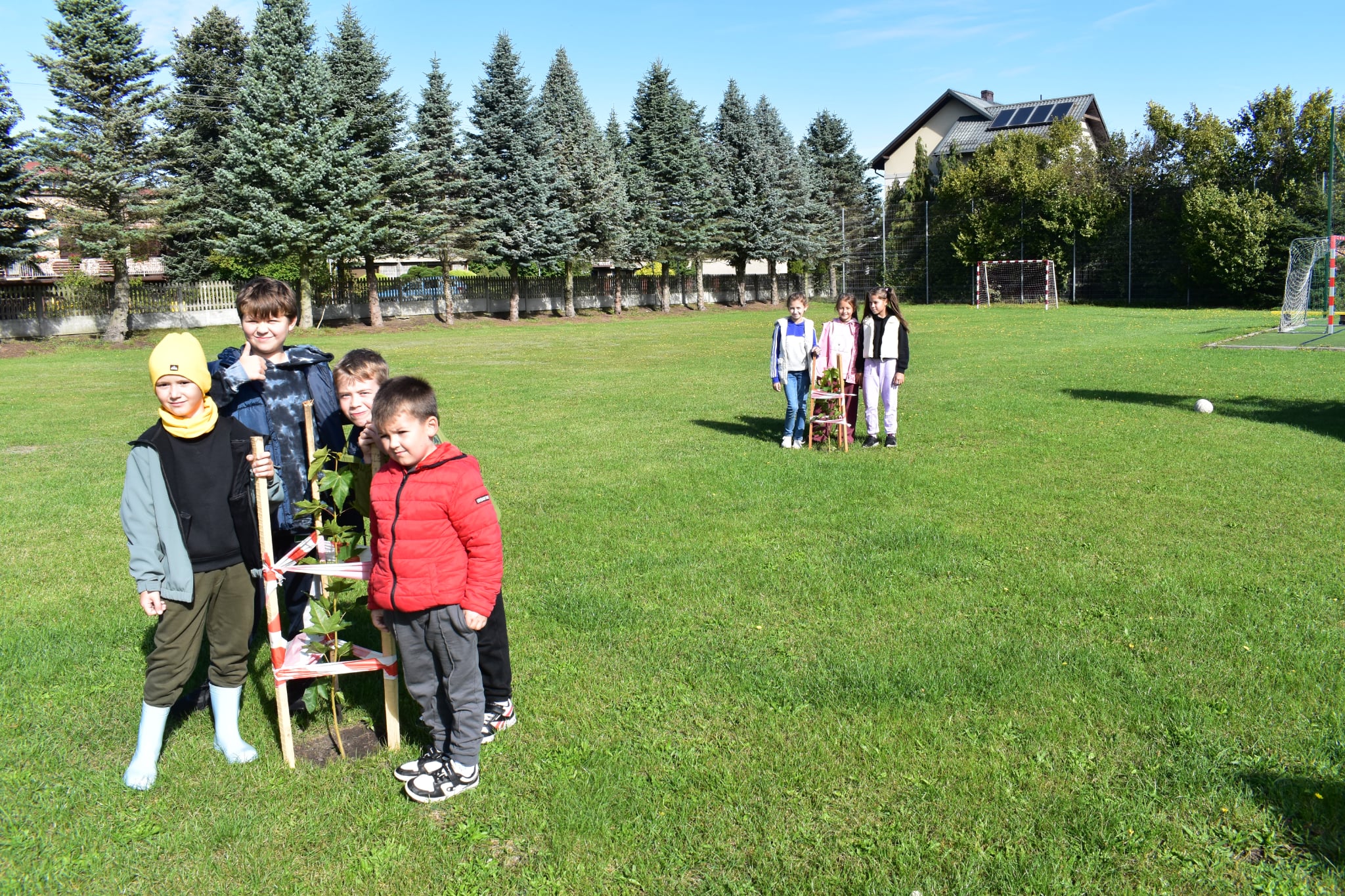 Na terenie szkoły posadziliśmy klony, które w przyszłości będą chroniły przed słońcem i deszczem.