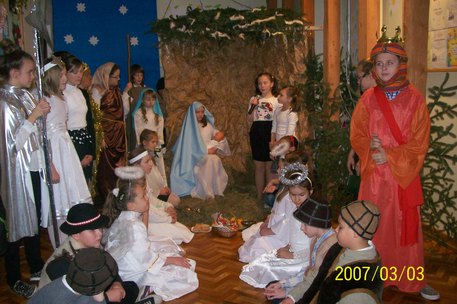 w której brali udział m.in. zaproszeni goście – emerytowani nauczyciele naszej szkoły. Uczniowie kl.V – VI zaprezentowali się w programie artystycznym o humorystycznym charakterze. Kilka scenek