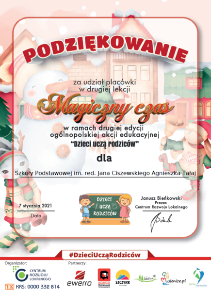 17 grudnia 2020r. odbyła się druga lekcja w ramach akcji edukacyjnej „Dzieci Uczą Rodziców” – „Magiczny czas”. Wzięli w niej udział uczniowie klasy II i III.
