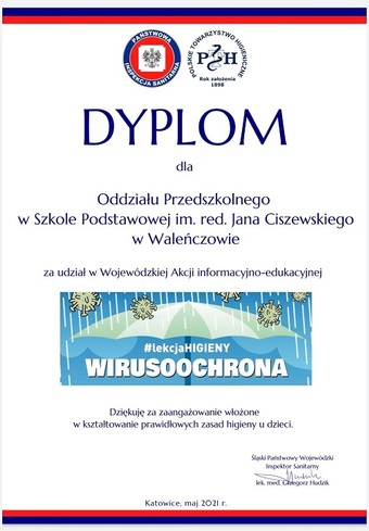 Oddział przedszkolny i uczniowie klas młodszych naszej szkoły biorą udział w akcji informacyjno – edukacyjnej „Wirusoochrona” zorganizowanej przez Wojewódzką Stację Sanitarno –Epidemiologiczną w Katowicach.